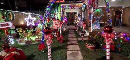 A ornamentação conta com uma grande variedade de elementos típicos da data, como pisca-piscas, guirlandas, arcos iluminados, papais noel e outros símbolos natalinos distribuídos de forma harmoniosa por todo o espaço. As luzes cobrem o muro, a calçada, a garagem e seguem para o interior da residência, iluminando o jardim e a varanda, criando um cenário envolvente que transforma completamente a fachada da casa e desperta sorrisos em quem passa.