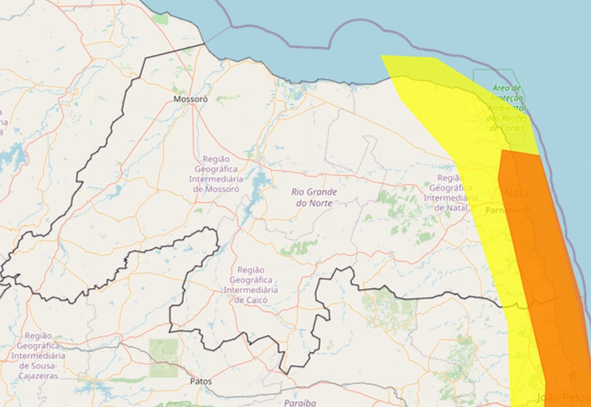 O alerta contempla municípios distribuídos em diversas regiões do estado, incluindo o Oeste, Alto Oeste, Central, Seridó e a Costa Branca. Essas áreas costumam apresentar características geográficas e urbanas que, em períodos de chuva contínua, podem favorecer o acúmulo de água em vias públicas, além de aumentar o risco de pequenos deslizamentos de terra em encostas e áreas de relevo mais acidentado.