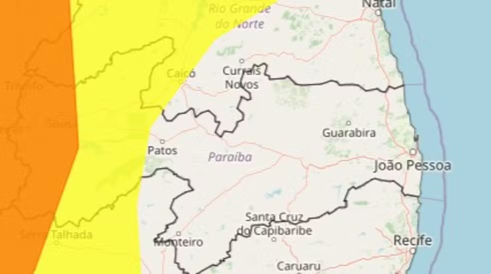 O alerta amarelo, que envolve perigo potencial, abrange 74 cidades paraibanas, onde as chuvas podem variar de 20 a 30 mm por hora ou até 50 mm no dia, com ventos fortes entre 40 e 60 km/h. Já o alerta laranja, de maior severidade, afeta 36 municípios e prevê precipitações de 30 a 60 mm por hora ou de 50 a 100 mm diários, com ventos que podem alcançar entre 60 e 100 km/h.