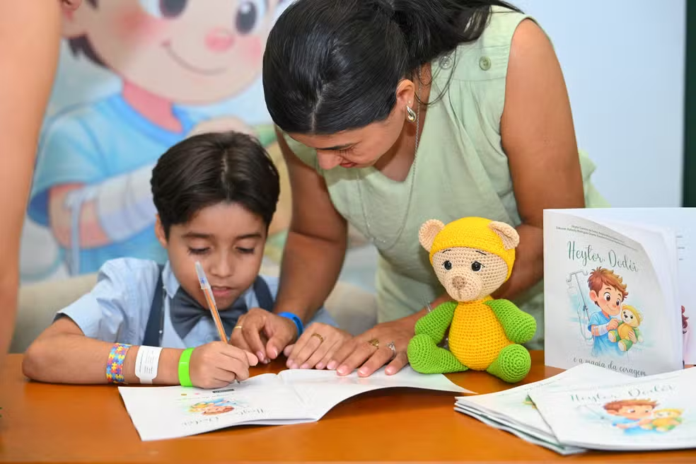 Heytor Carreiro da Costa, de 11 anos, participou recentemente do lançamento do livro “Heytor, Dodói e a Magia da Coragem”, que retrata sua própria história de vida no Hospital Unimed Primavera, em Teresina. A narrativa infantil surgiu a partir da convivência entre o menino, sua família e a equipe de saúde, representando o que a Unimed Teresina chama de seu Jeito de Cuidar. Heytor esteve acompanhado do seu inseparável ursinho de pelúcia, Dodói, presente que ganhou da avó Marinete e que o acompanha desde os primeiros dias de vida, sendo companhia constante durante consultas, exames e internações.